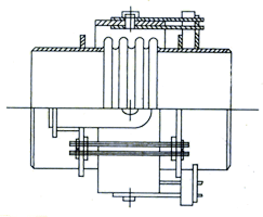 該補(bǔ)償器與角向型不同處在于它有一個(gè)萬向環(huán)在萬向環(huán)的周向有二對(duì)互相垂直的鉸鏈結(jié)構(gòu)。因此它能吸收任意平面的角位移。同樣吸收位移時(shí)需二個(gè)或三個(gè)組合使用,不允許單個(gè)使用。